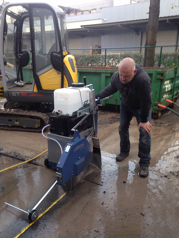 - wegenwerken: zagen van krimpvoegen is asfalt, doorslijpen van beton, beton frezen, asfalt zagen en boren van asfalt in functie van fietspaden, rails, enz.